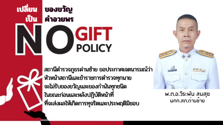 นโยบายนโยบายไม่รับของขวัญและของกำนัลทุกชนิดจากการปฏิบัติหน้าที่ (No Gift Policy)